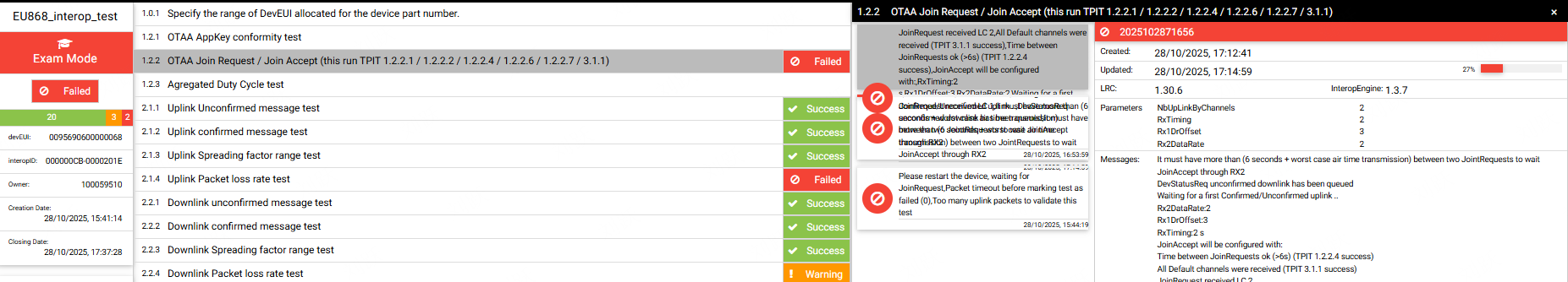 Interop EU863-870, test 1.2.2 failed ( OTAA Join Request / Join Accept )